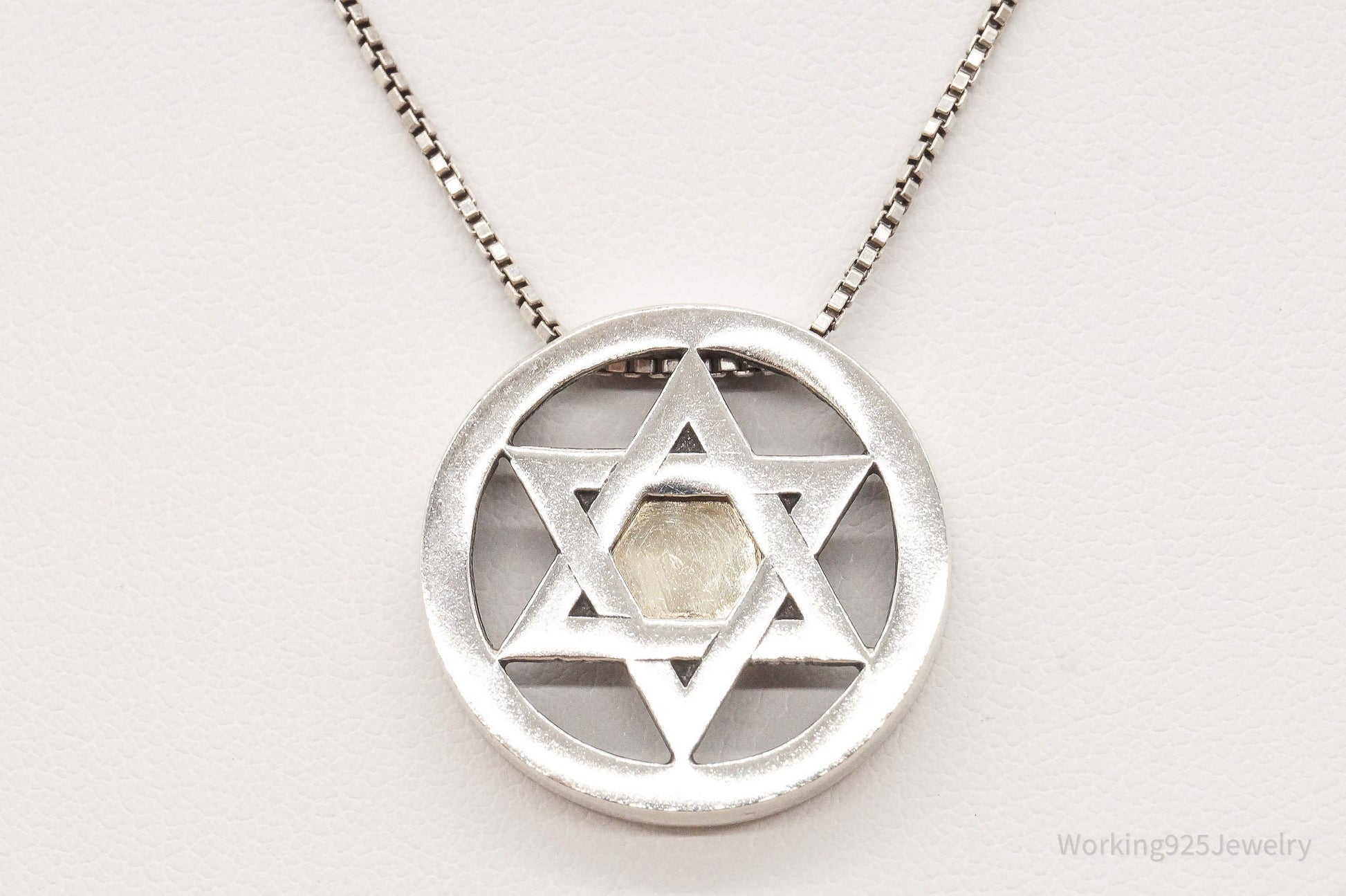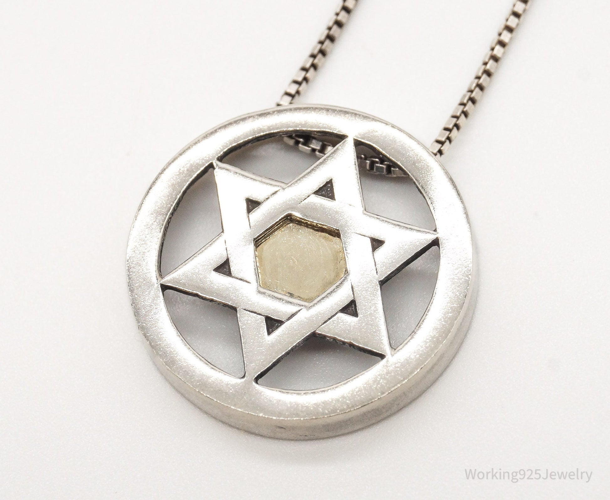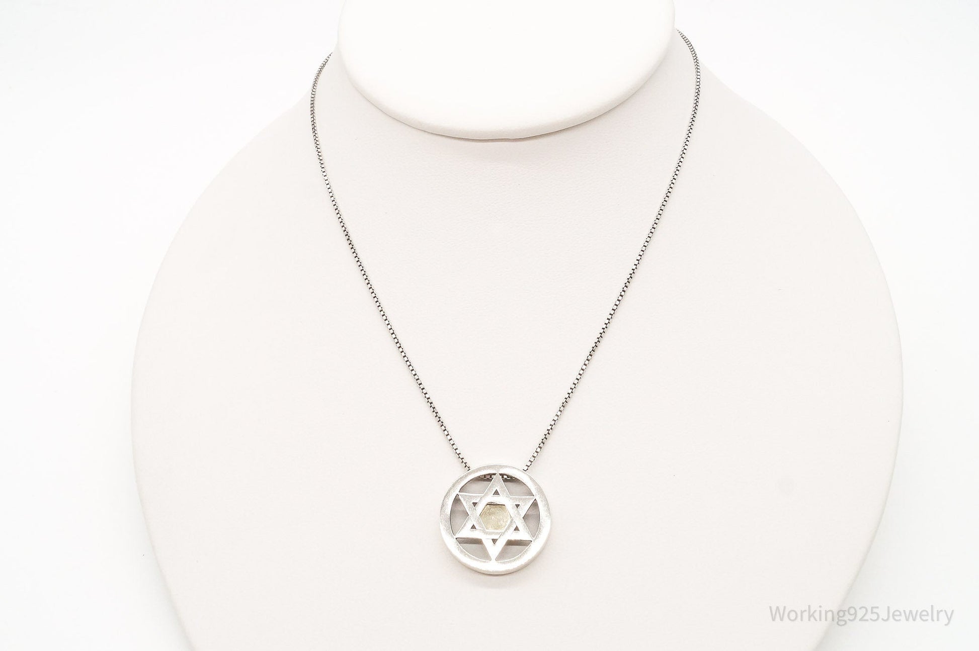 Vintage Star Of David Brass Copper Sterling Silver Necklace